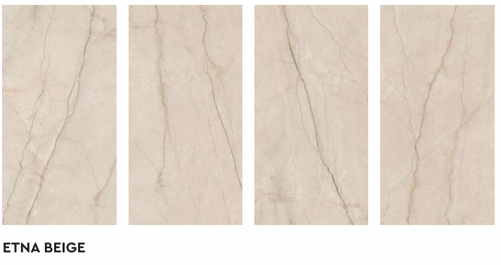 Etna Beige, une expression raffinée de la simplicité et de l'élégance. Ce modèle présente des tons beiges doux, complétés par des veines délicates en nuances plus foncées, évoquant la texture riche et les motifs subtiles du marbre naturel.
